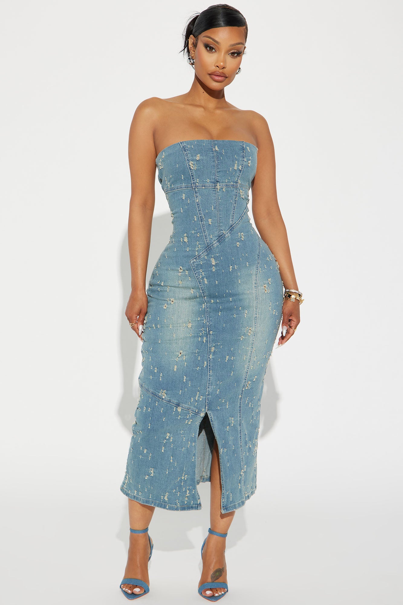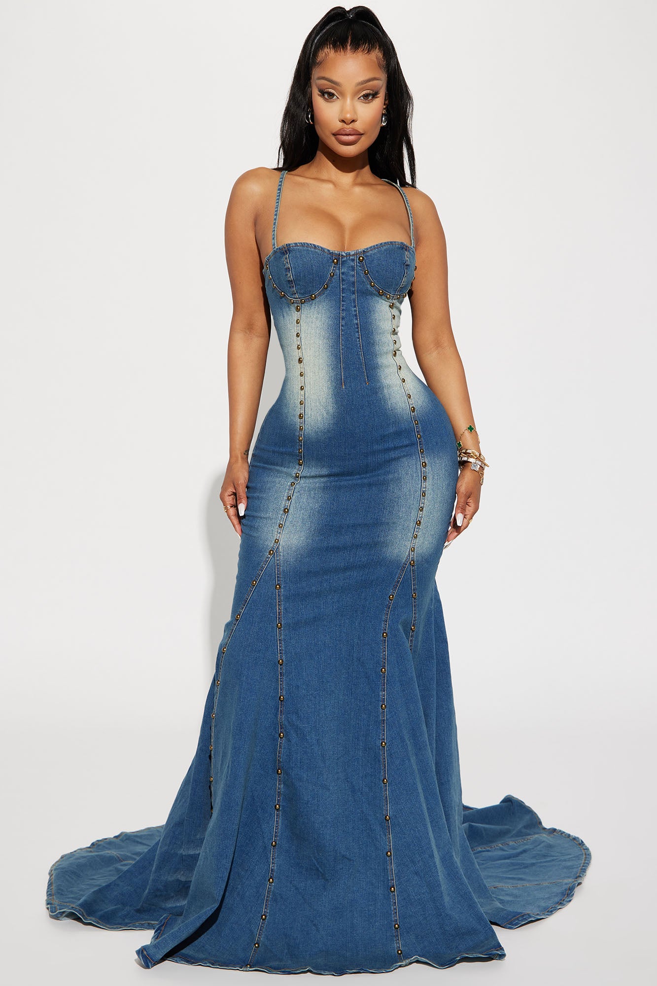 Alyana Denim Maxi Dress Medium Wash Fashion Nova Dresses Fashion Nova