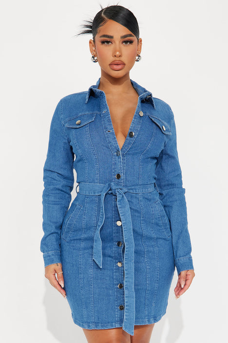 Giselle Denim Mini Dress Medium Wash Fashion Nova Dresses Fashion Nova