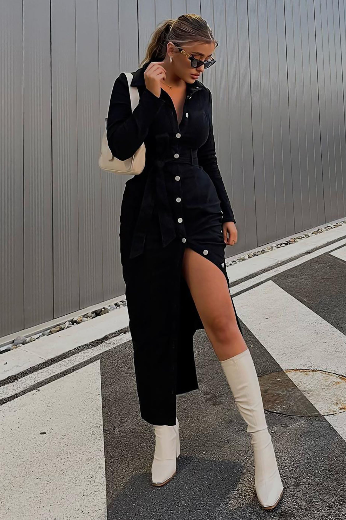 Denim Midi Dress Charcoal Fashion Nova Dresses Fashion Nova